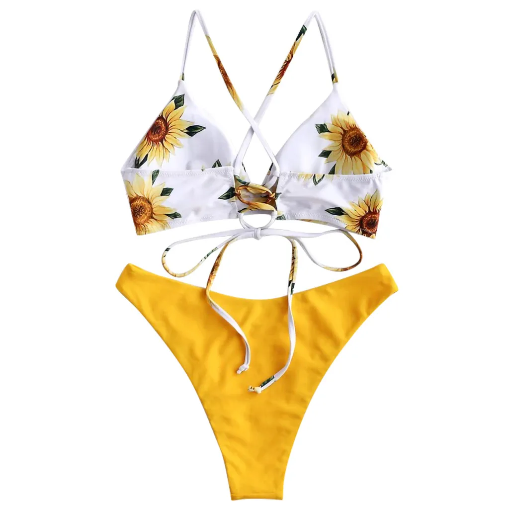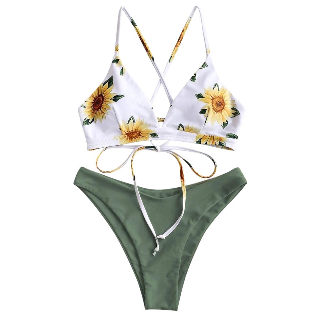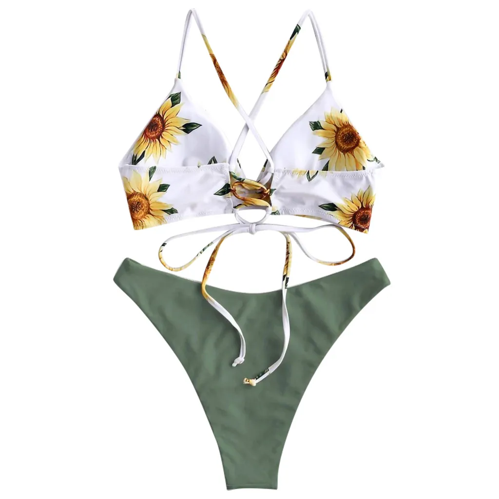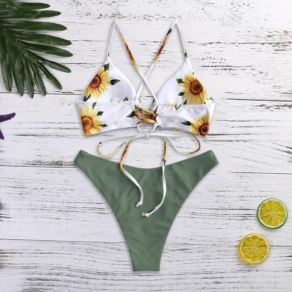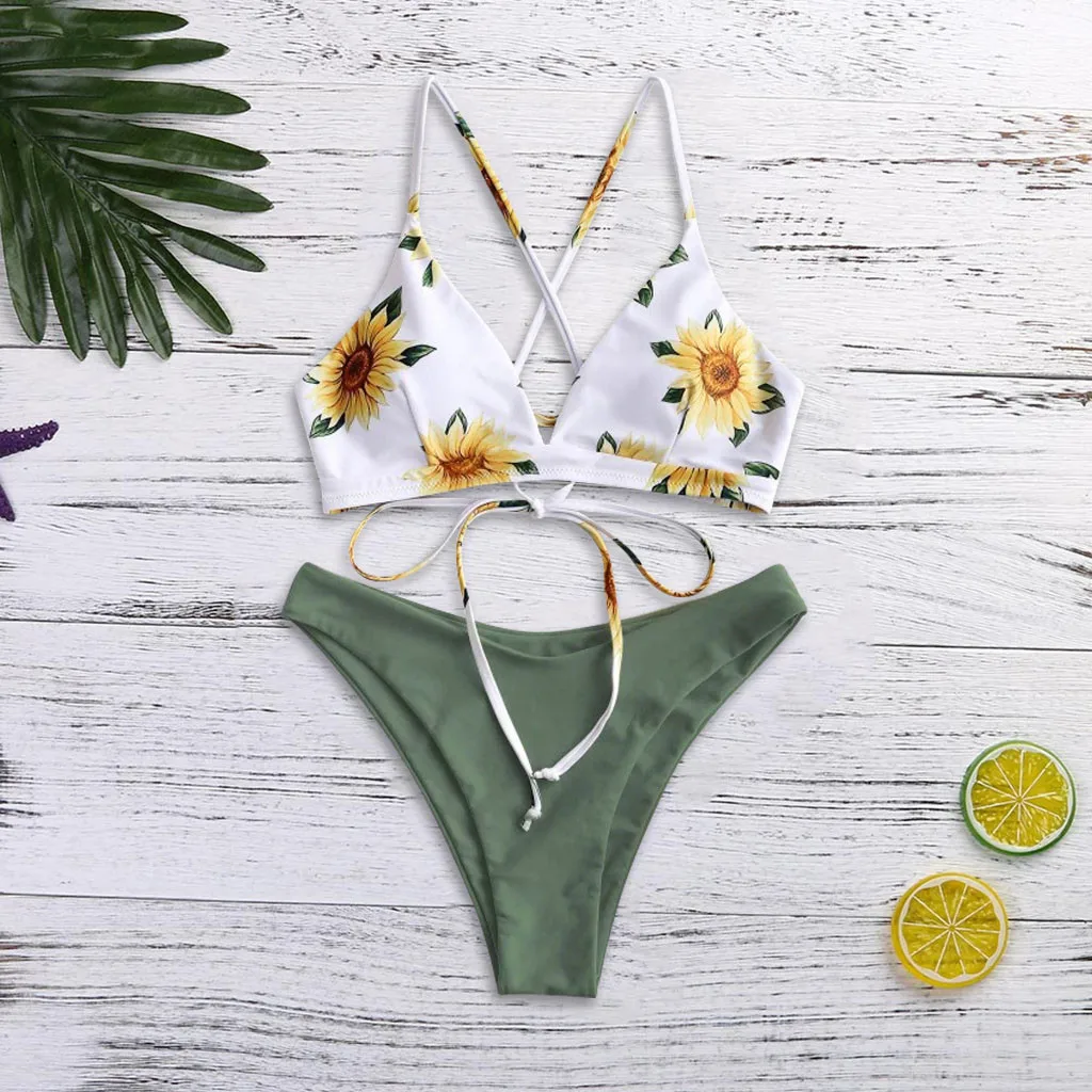 Women Print Push-Up Padded Bra Beach Bikini Set Swimsuit Beachwear Swimwear