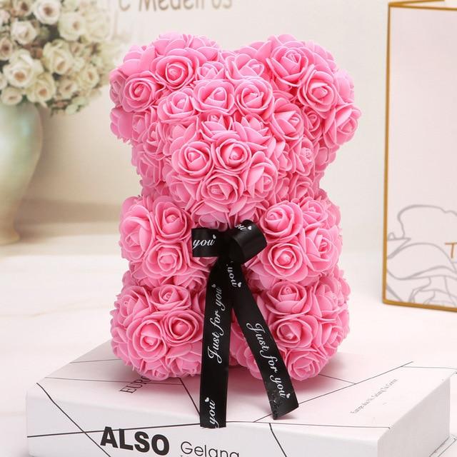 25cm Artificial Flowers Rose Bear Multicolor Foam Rose Teddy Bear Girlfriend Valentines Day Gift Birthday Party Decoration